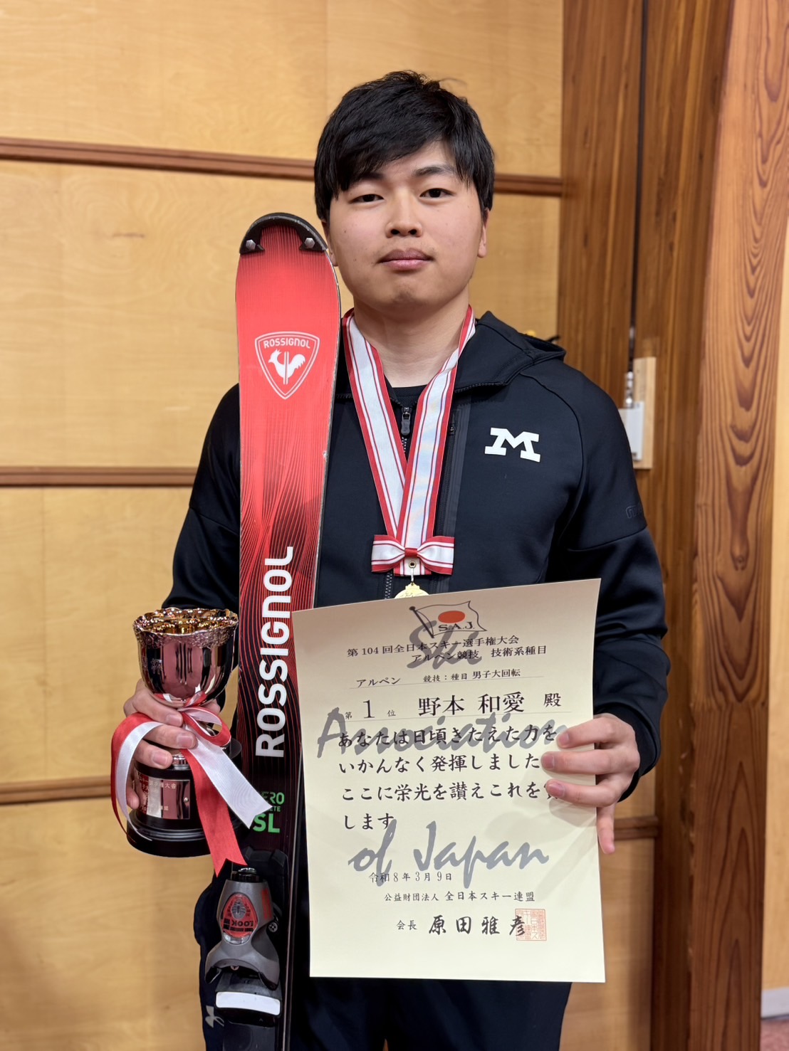 長野県・菅平高原スキー場にて開催されている第104回全日本スキー選手権 アルペン競技GSL種目にて4年野本和愛が優勝いたしました。